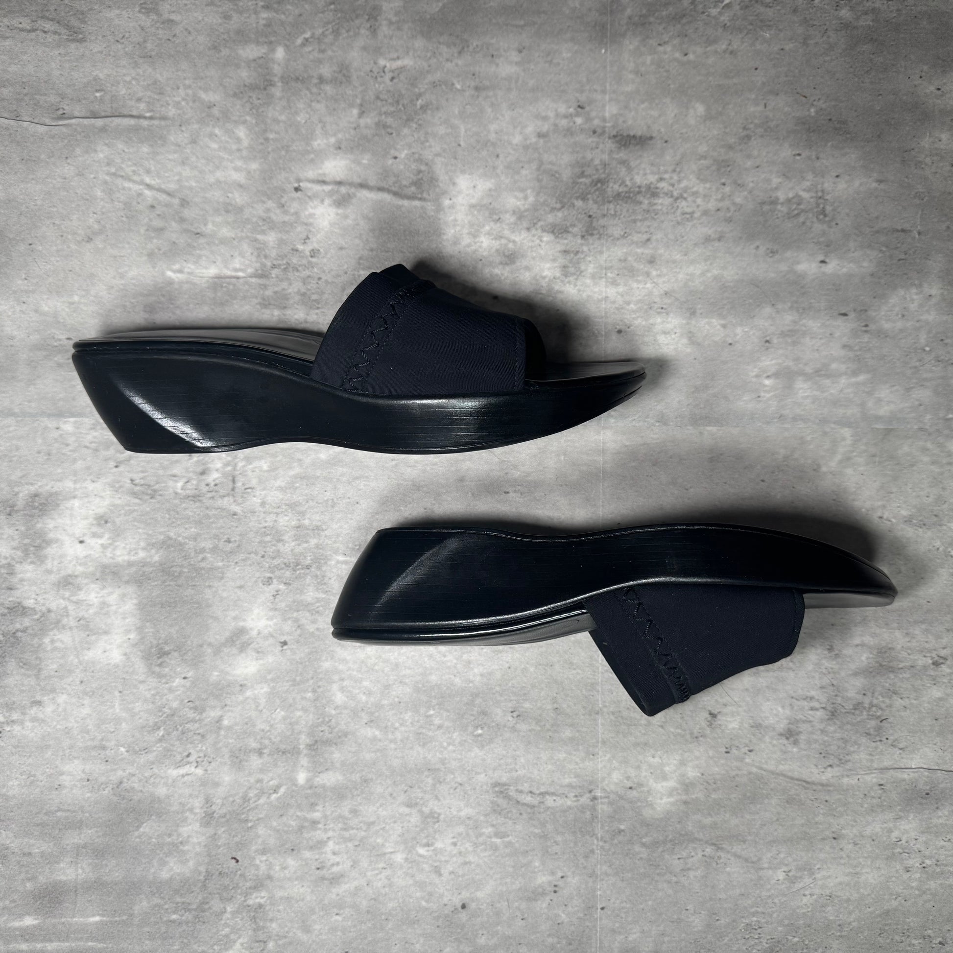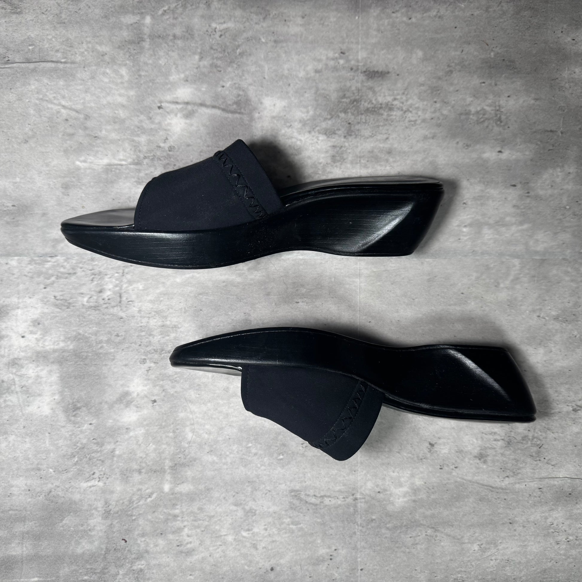 90s Stuart Weitzman Black Leather Slide Platform Sandals – Size 8