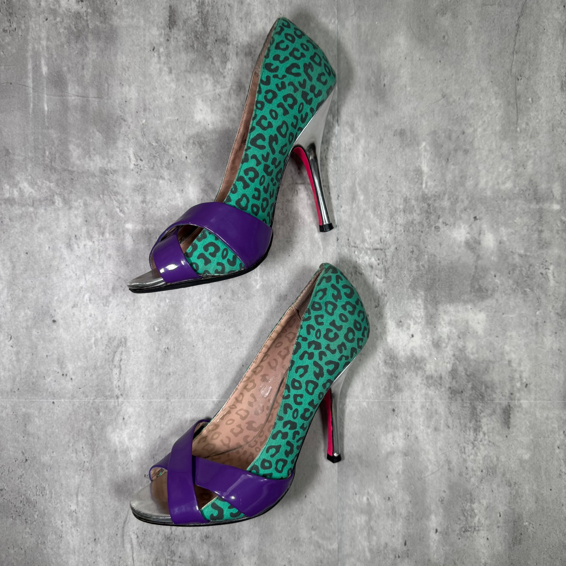 Vintage Betsey Johnson “Jassmine” Multicolor Leopard Print Heels – Size 7