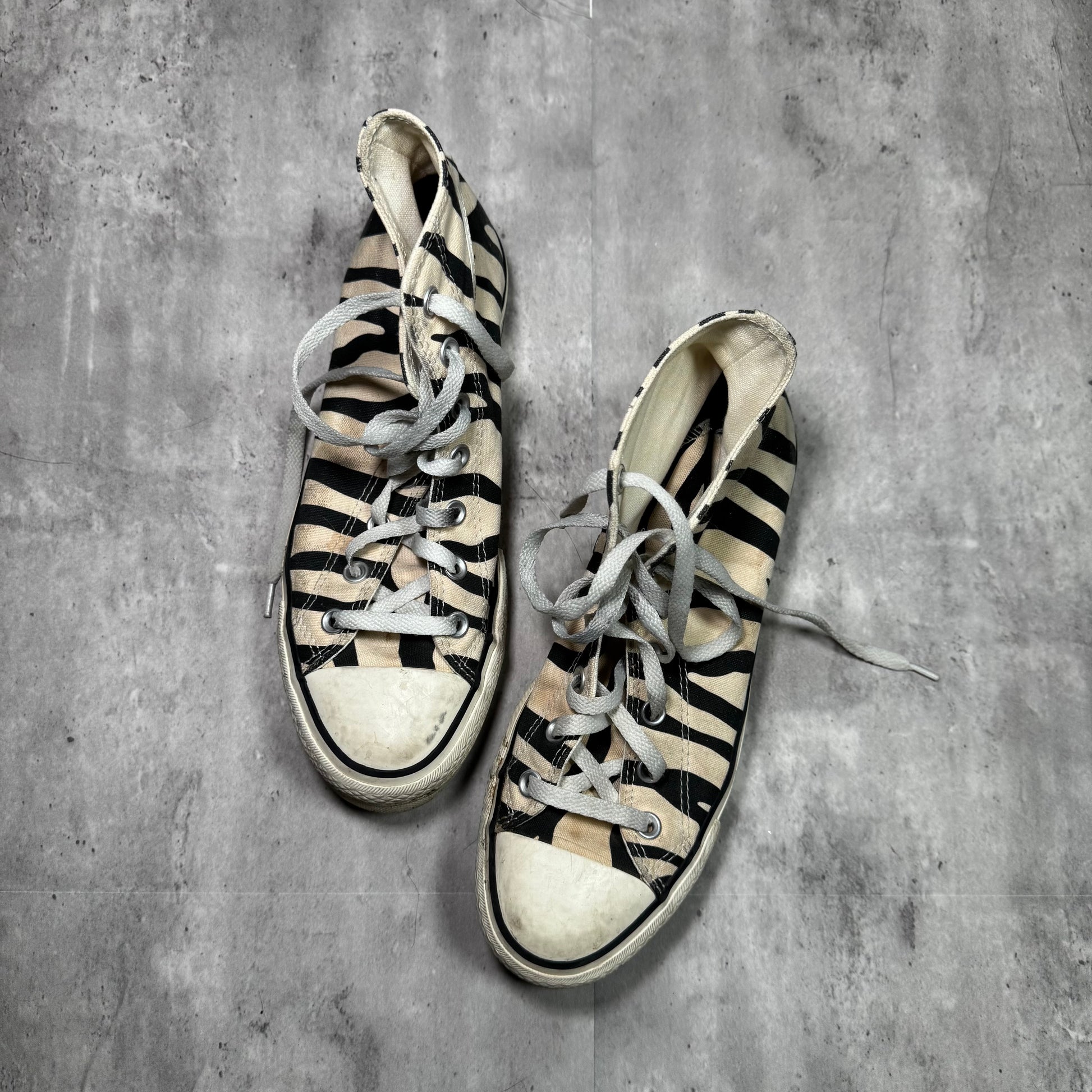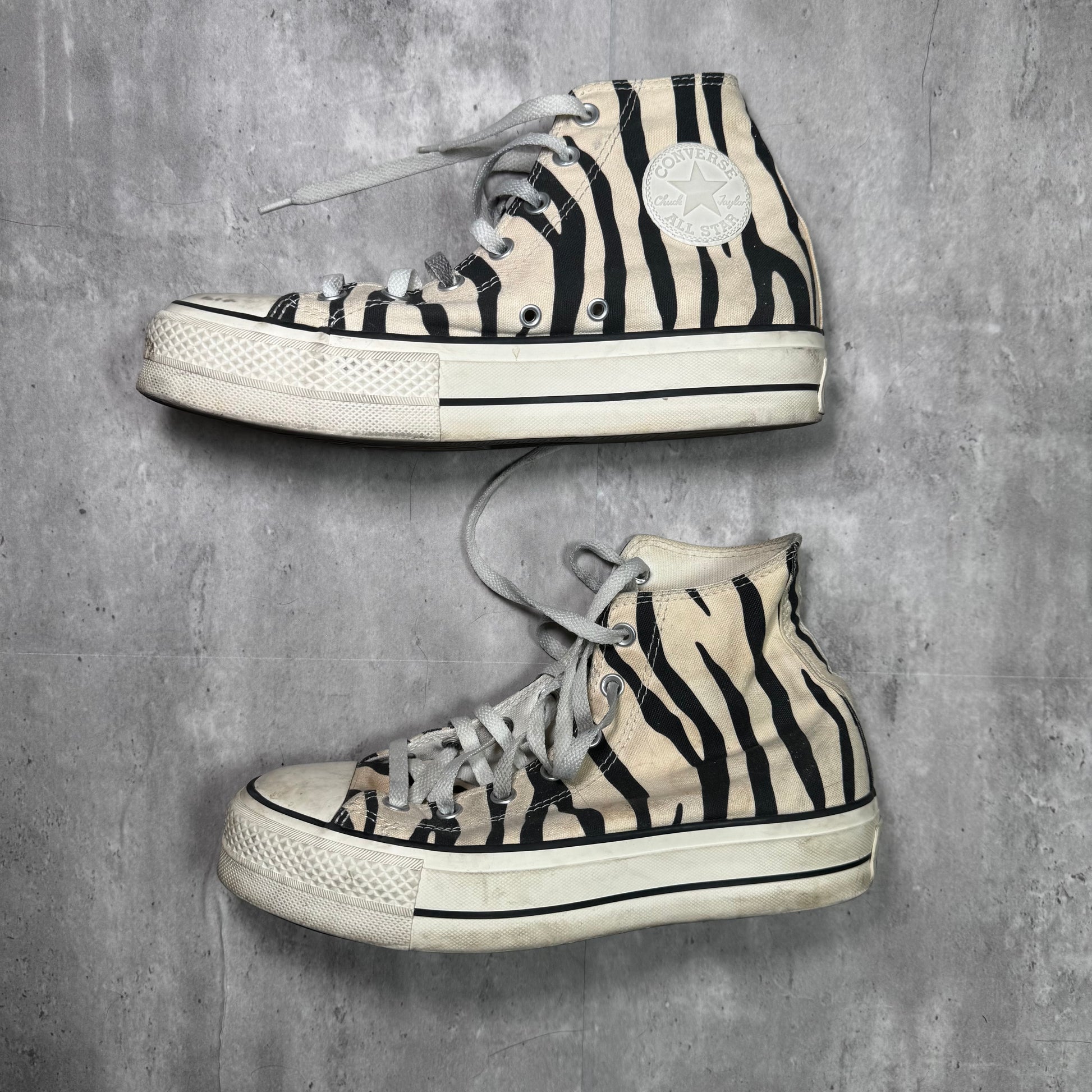 A little wild, a little worn, and still full of style—these Converse zebra print platform high tops bring serious personality to any outfit. Featuring a bold black-and-white animal print and chunky rubber sole, they’re the perfect combo of statement sneaker and everyday staple.
