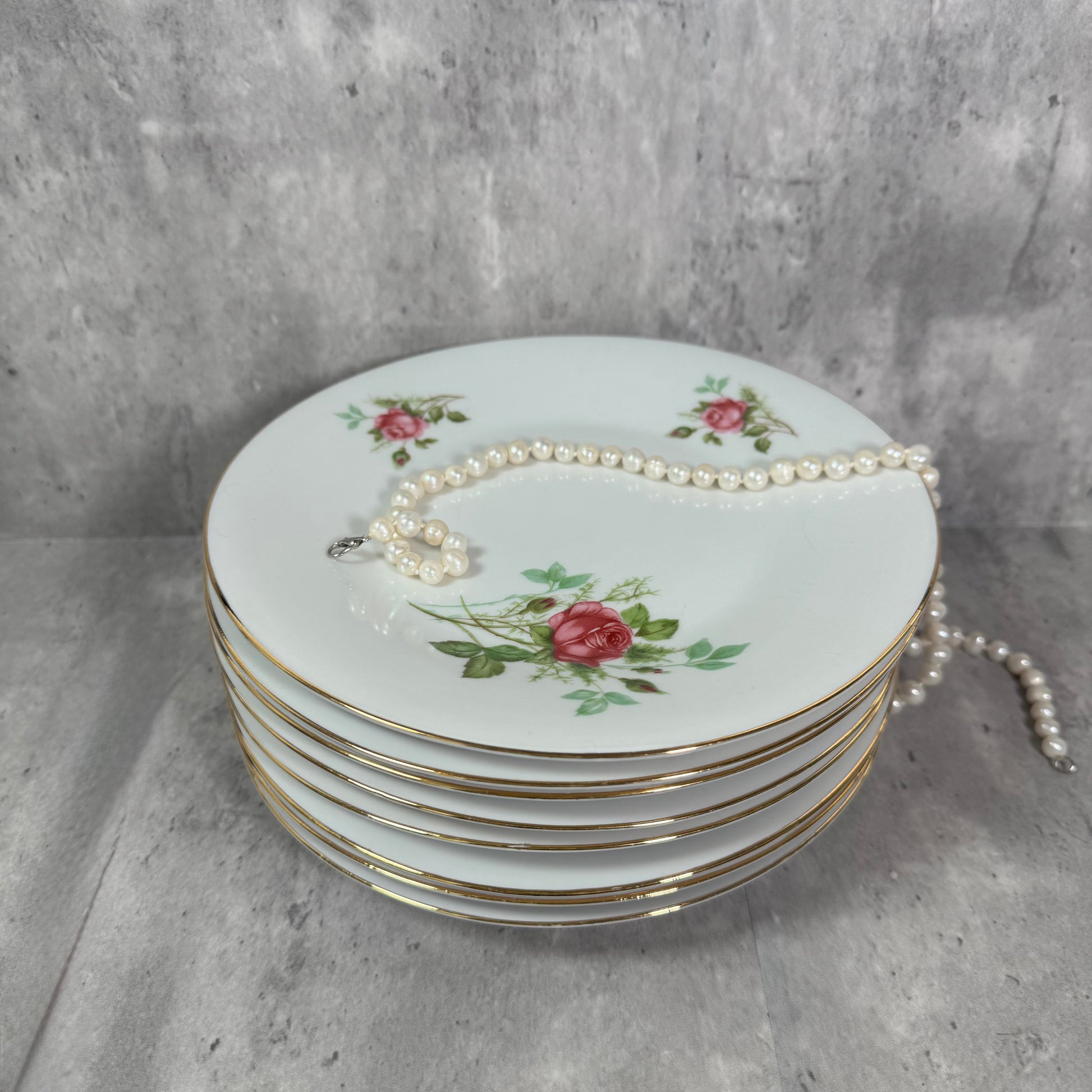 Elegant and romantic, these vintage side plates by Hertel Jacob feature delicate rose motifs framed with a fine gold rim. Made in Bavaria, Germany, they reflect the refined porcelain craftsmanship the region is known for, with a timeless floral design that adds a soft, vintage charm to any table setting.
