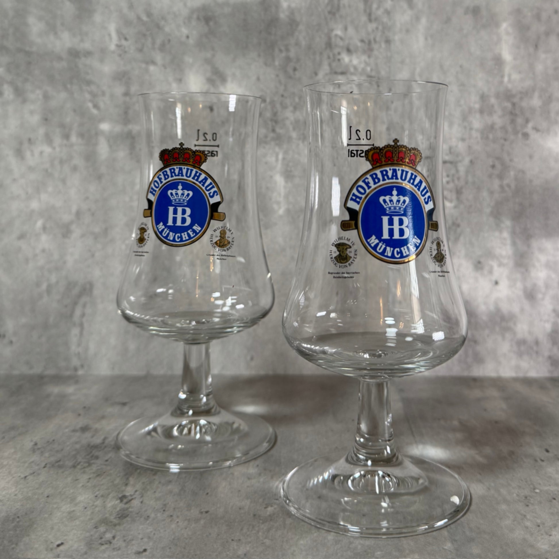 Set of 2 Hofbräuhaus München 0.2L Beer Glasses – Traditional German Brewery Logo