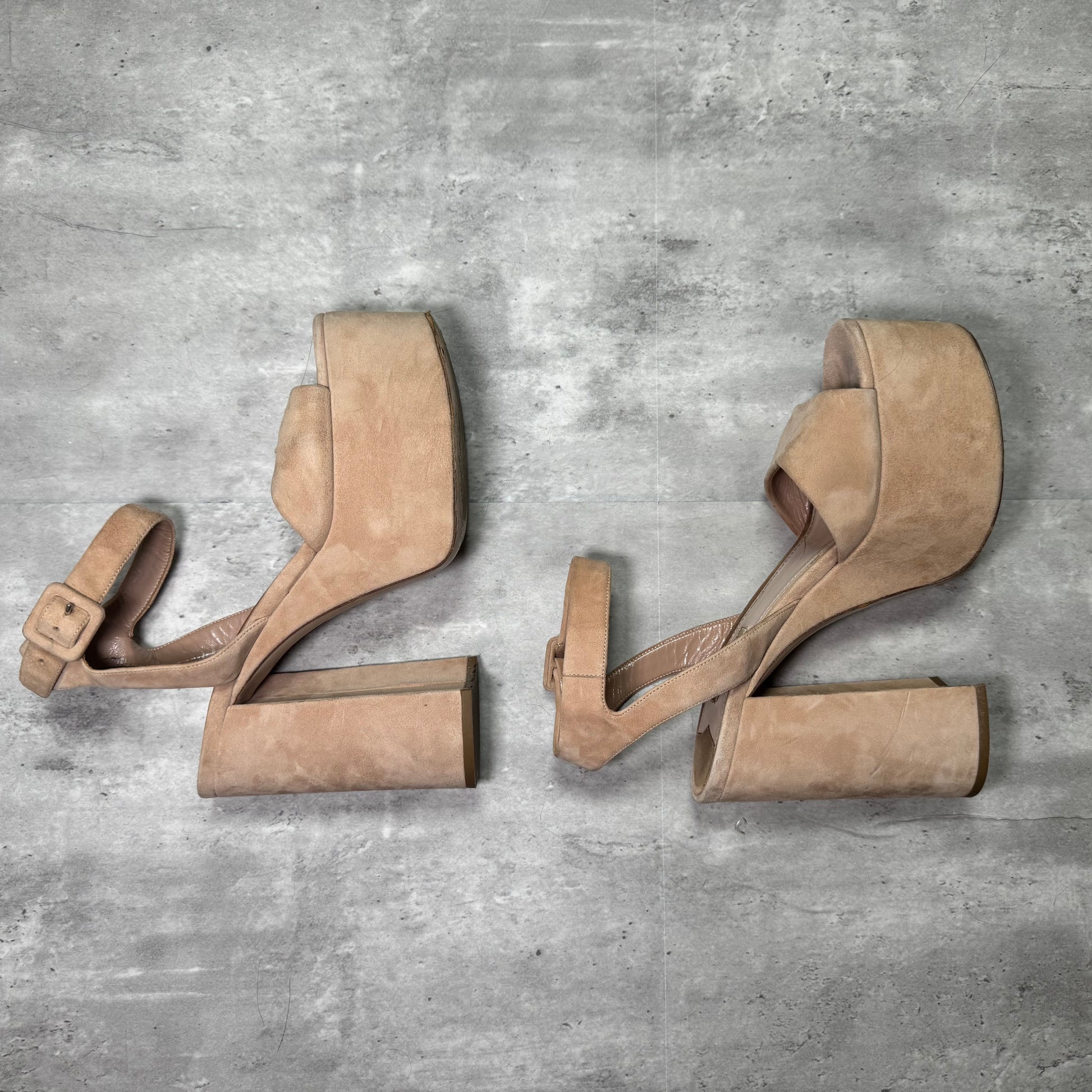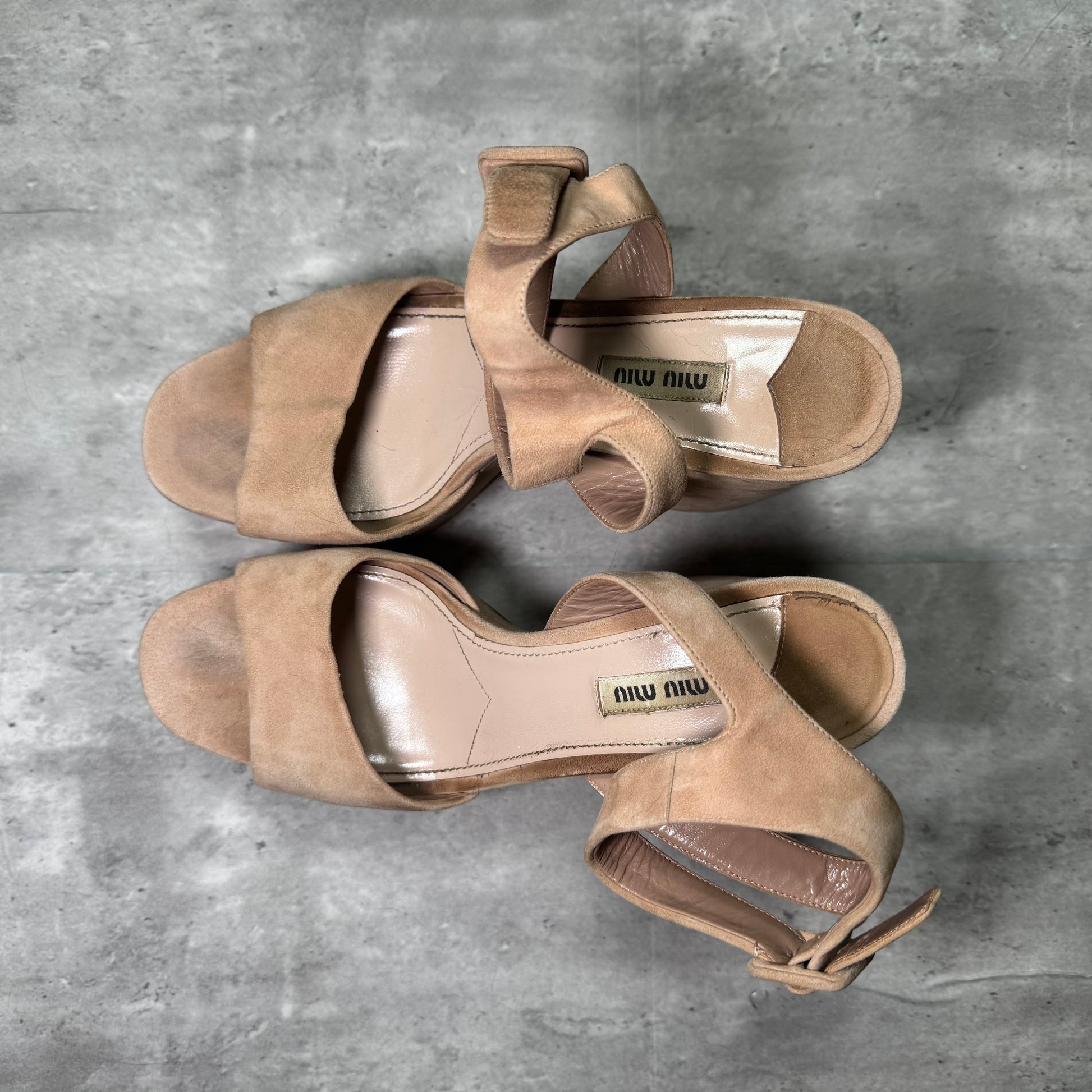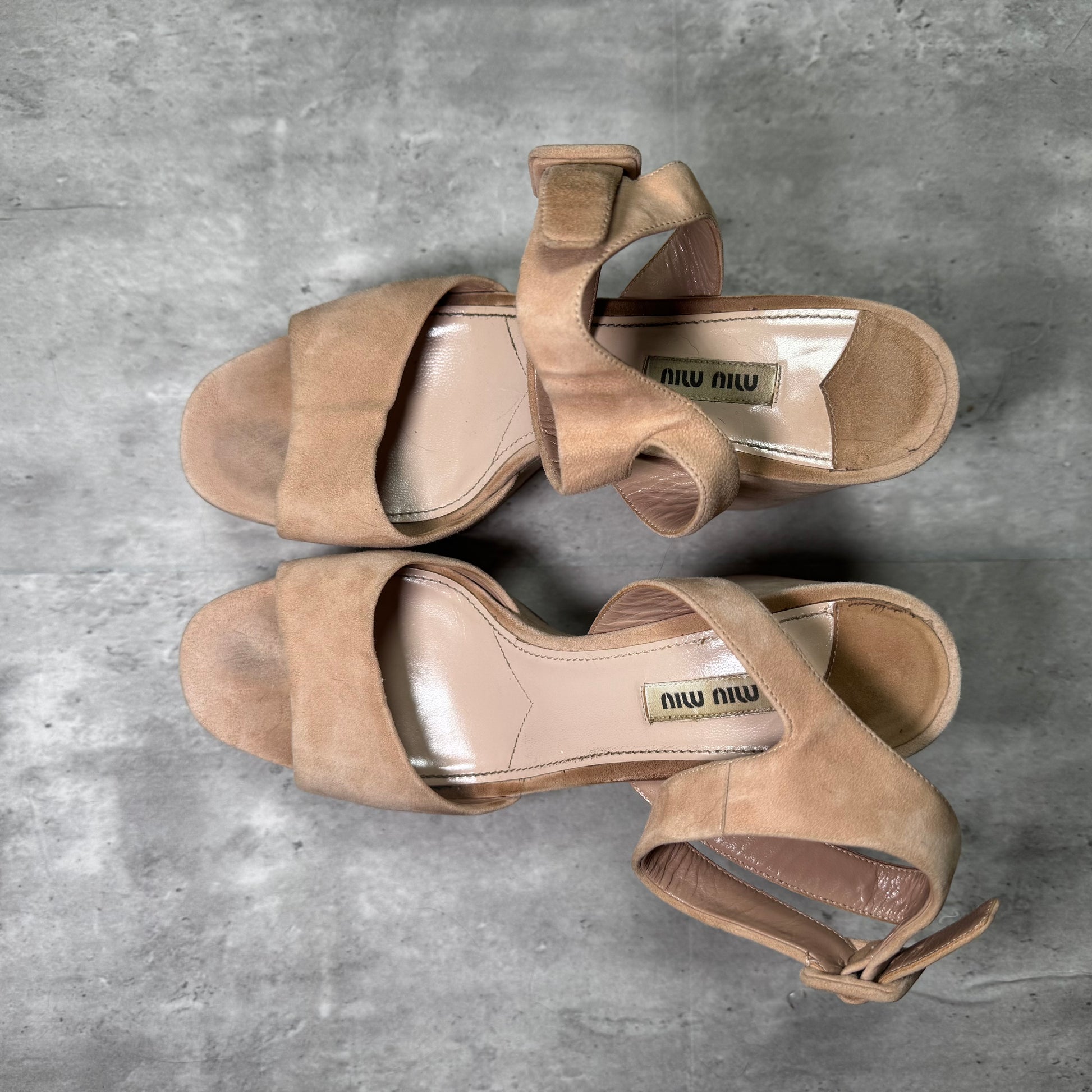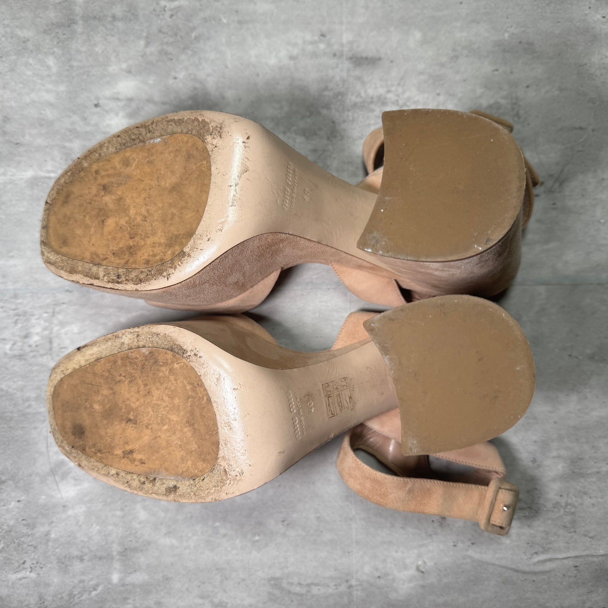 Miu Miu Suede Platform Heels – Ankle Strap with Round Buckle, Size 9