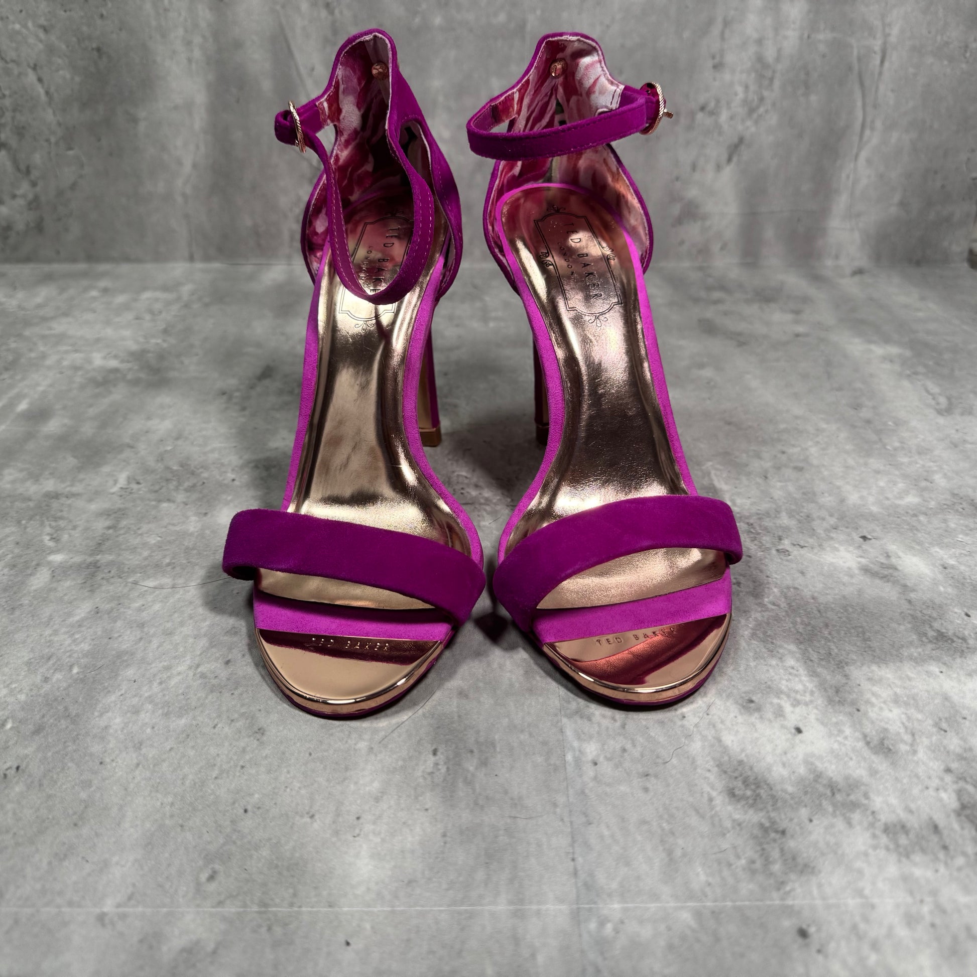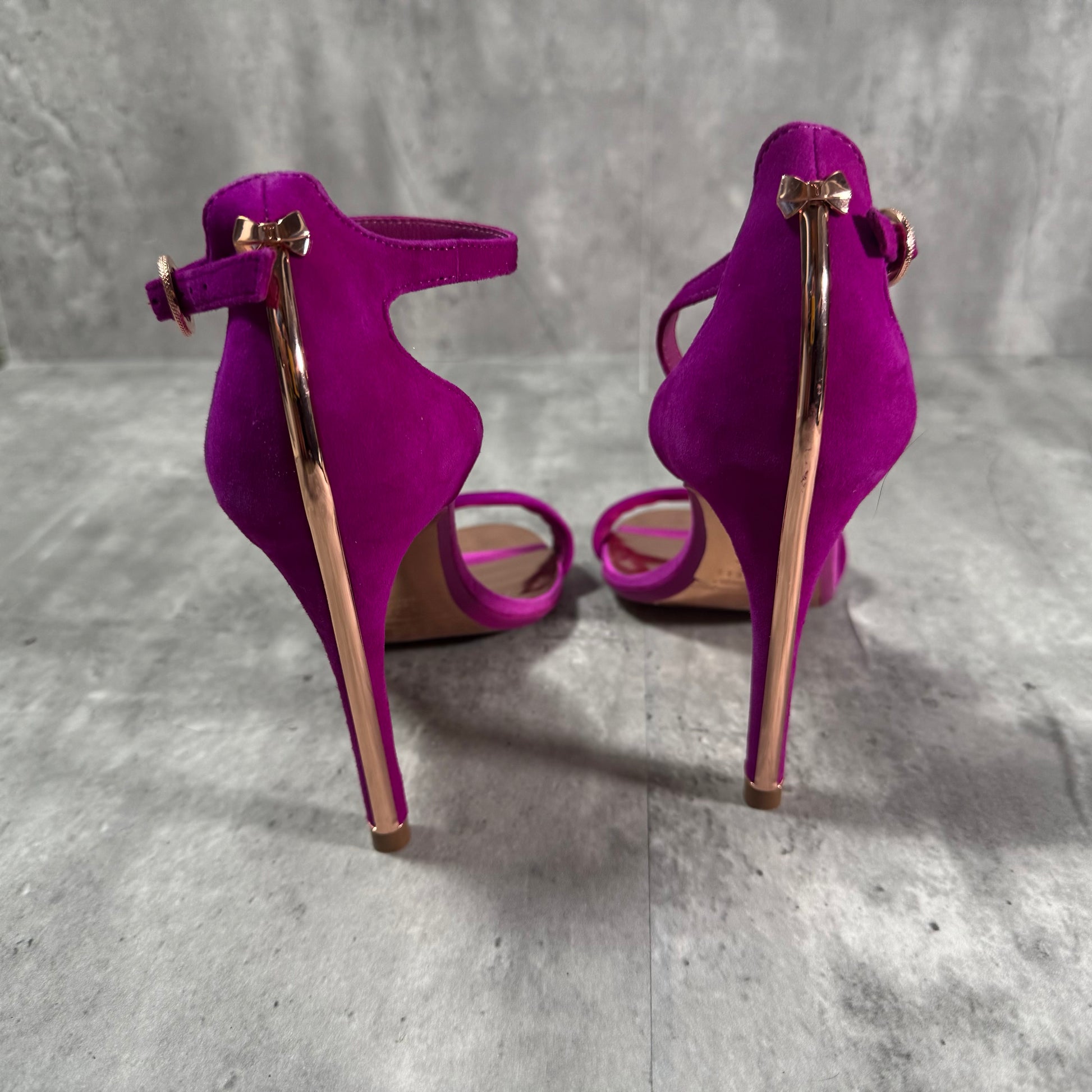 Ted Baker Velvet Fuchsia strappy Heels with rose gold details