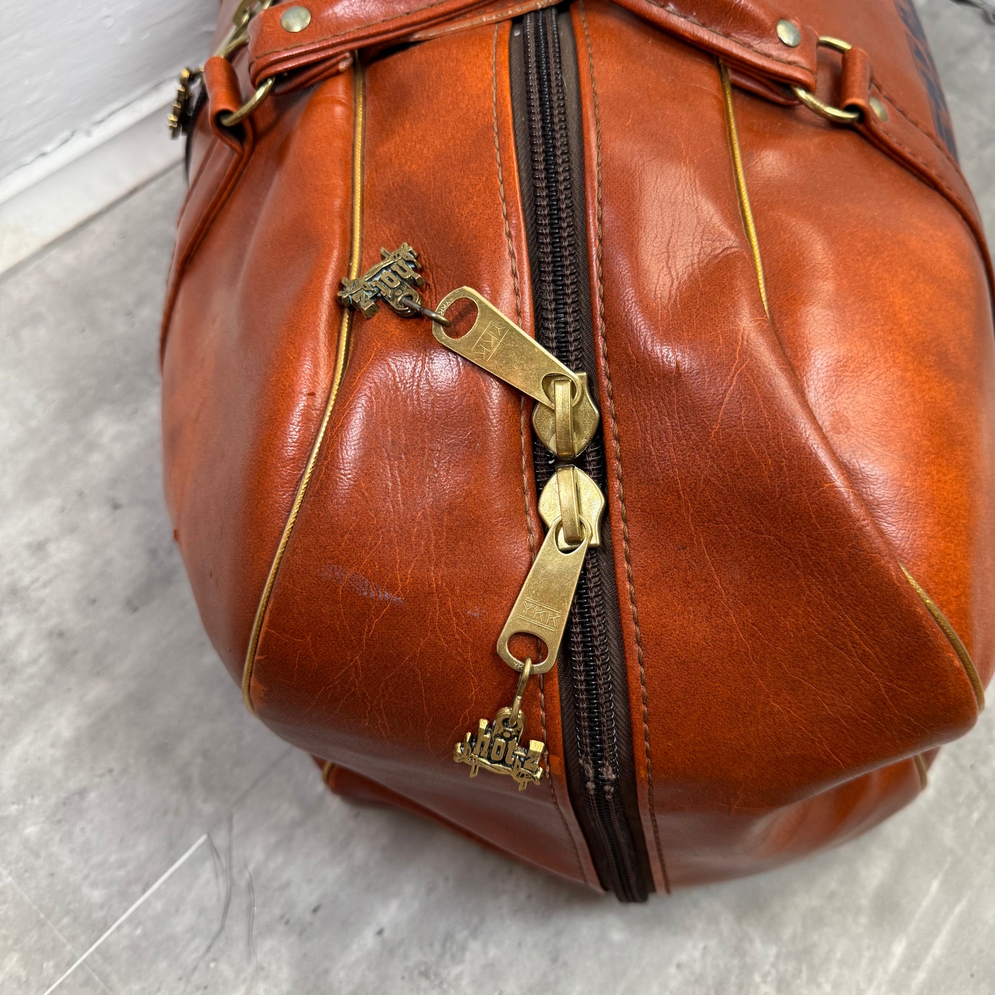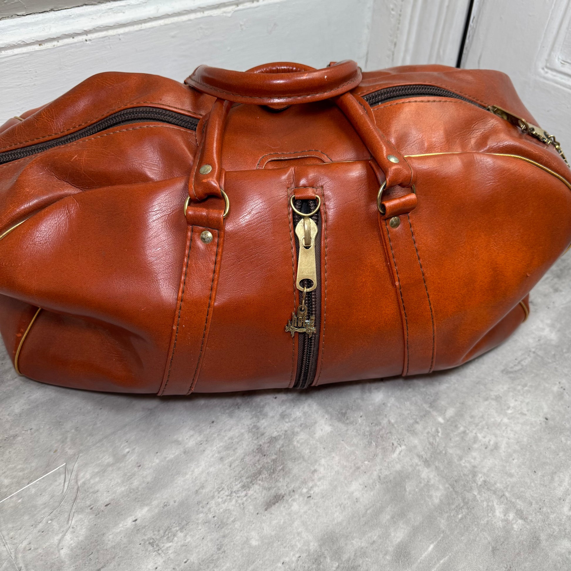 Vintage STAR Cognac Leather Duffle Bag with Brass Hardware